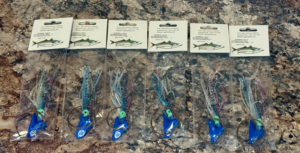 Blue head pink silver glitter black dotted skirt rigged on a blue head . These are 1.5 oz rigged
